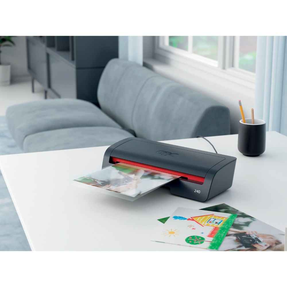 Laminates a 75 micron A4 sheet in 45 seconds.