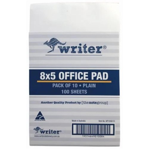 Writer Bank Office Pad 200 x 125mm 100 Sheet Plain White Pack Of 10