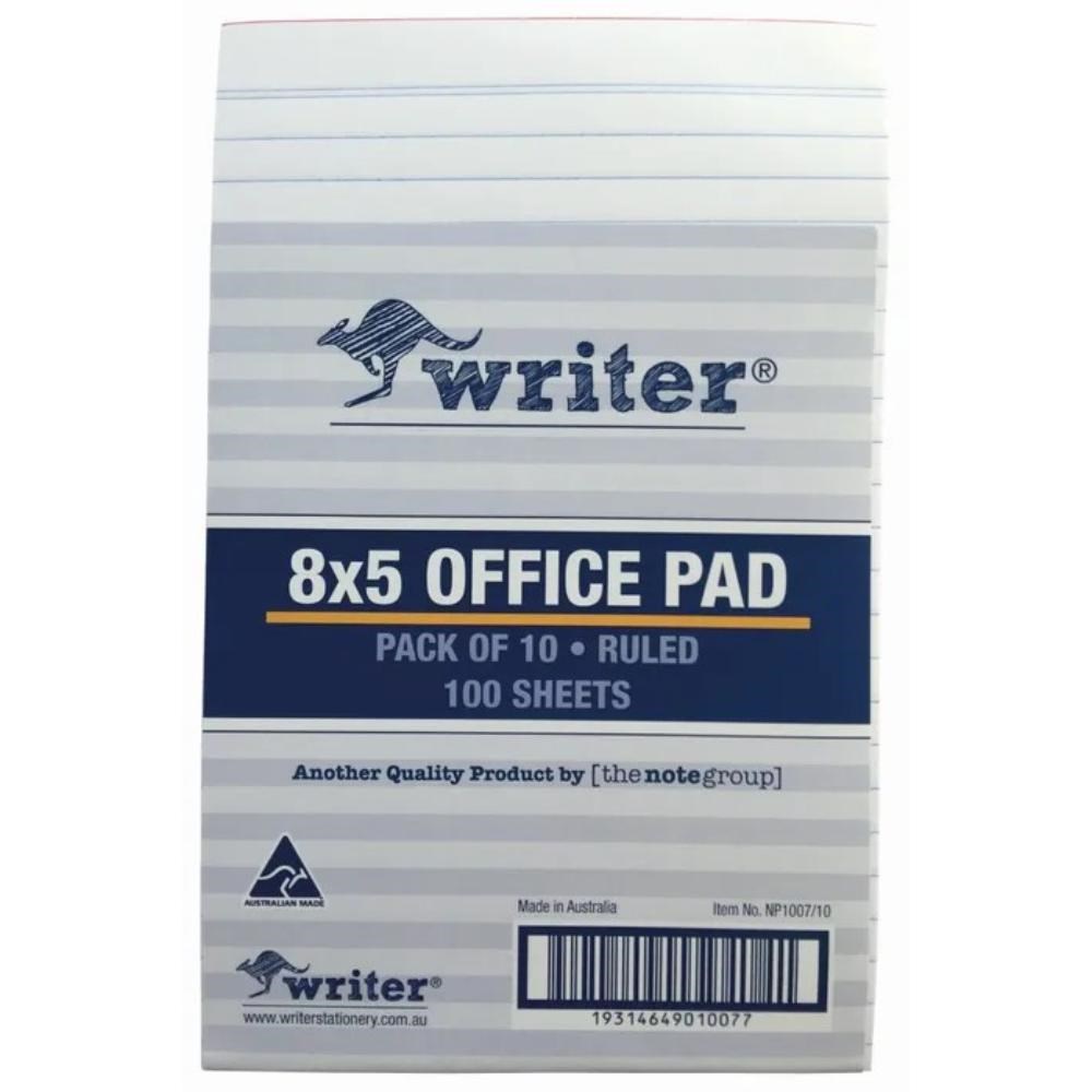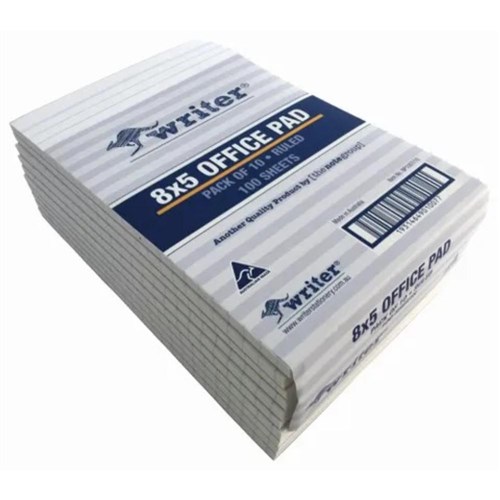 Writer Bank Office Pad 200 x 125mm 100 Sheet Ruled White Pack Of 10