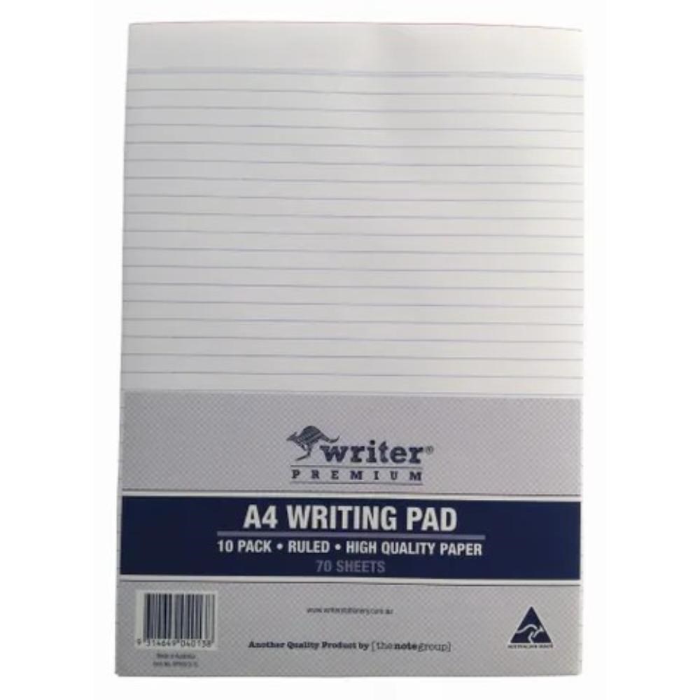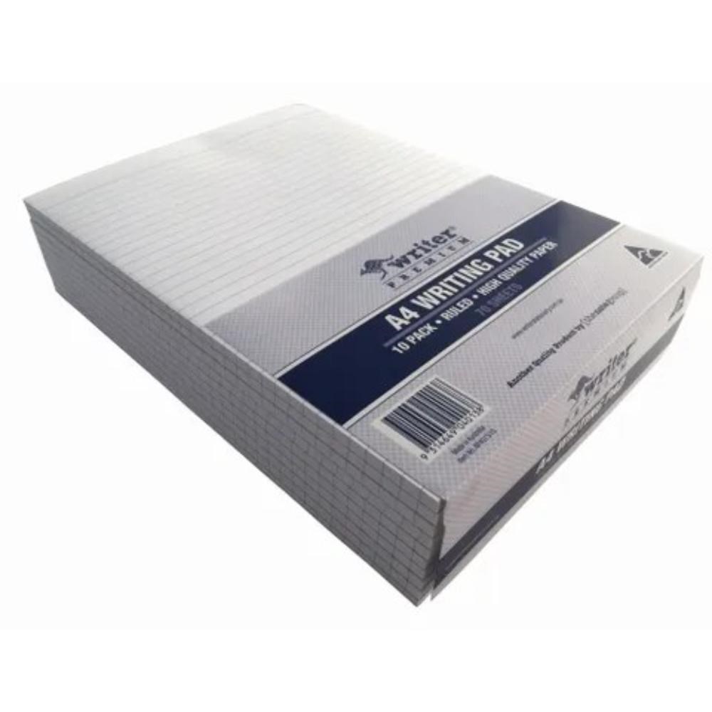 Writer Premium Bond Writing Pad A4 70 Sheet 8mm Ruled 2 Sides White Pack Of 10