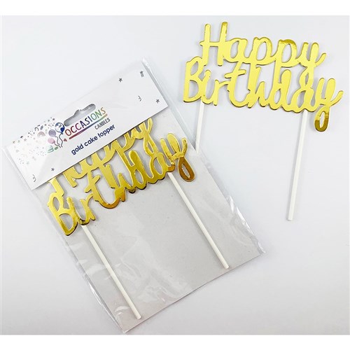 Alpen Happy Birthday Cake Topper 135mm H x 100mm W Metallic Gold