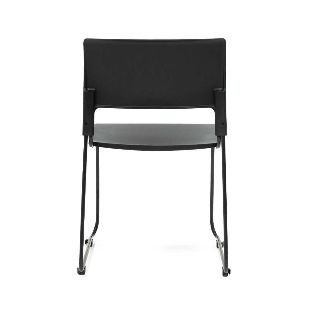 • Composition: Black polypropylene seat and back rest. Robust solid steel sled base frame finished in black powder coat.