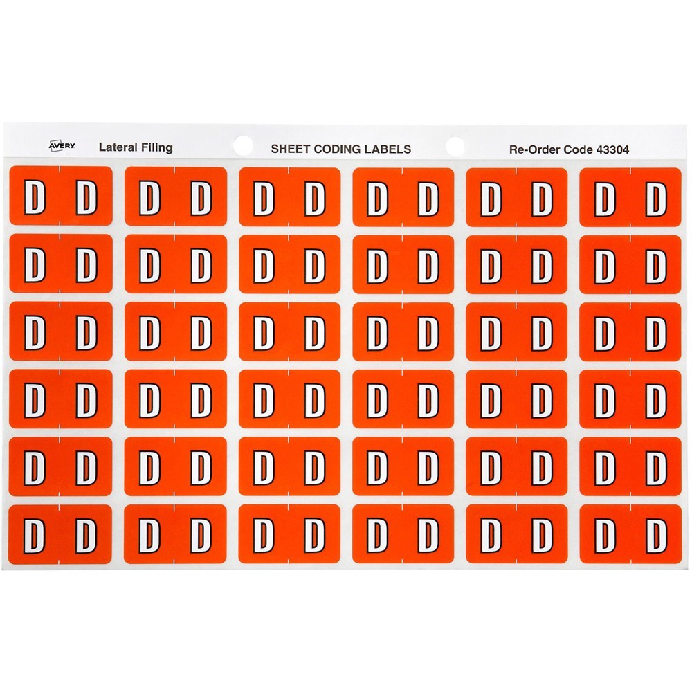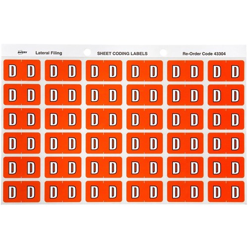 Avery Alphabet Coding Label D Side Tab 25x38mm Dark Orange Sheet Pk180