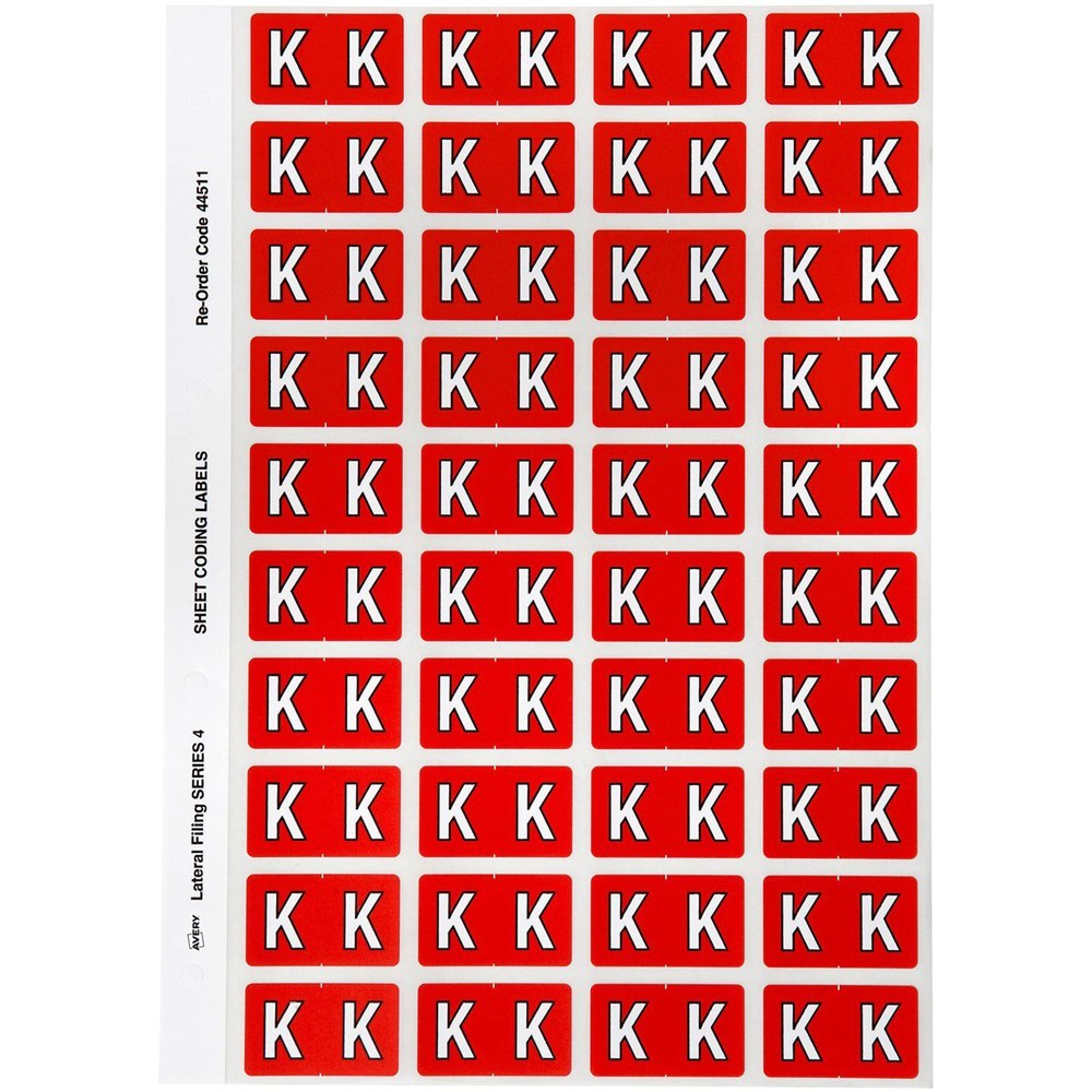 Avery Alphabet Coding Label K Side Tab 25x42mm Red Pack of 240