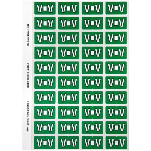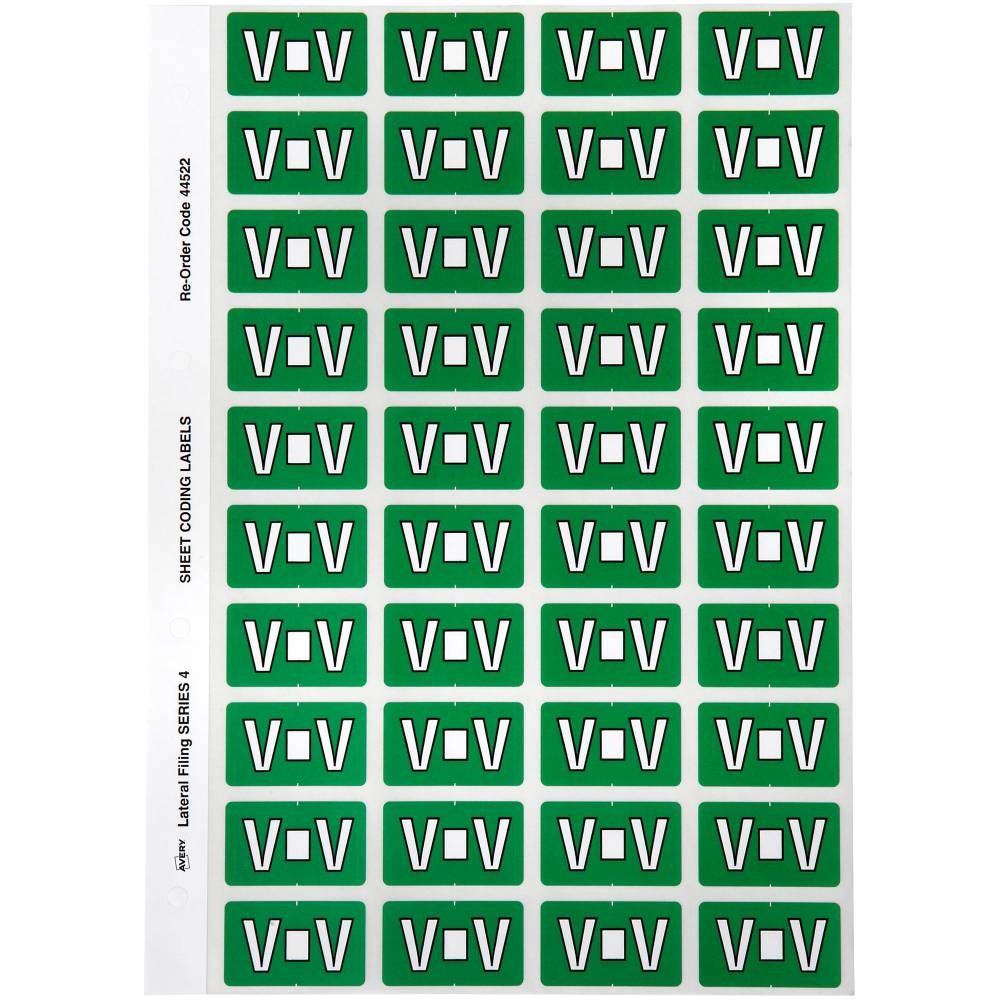 Avery Alphabet Coding Label V Side Tab 25x42mm Dark Green Pack of 240
