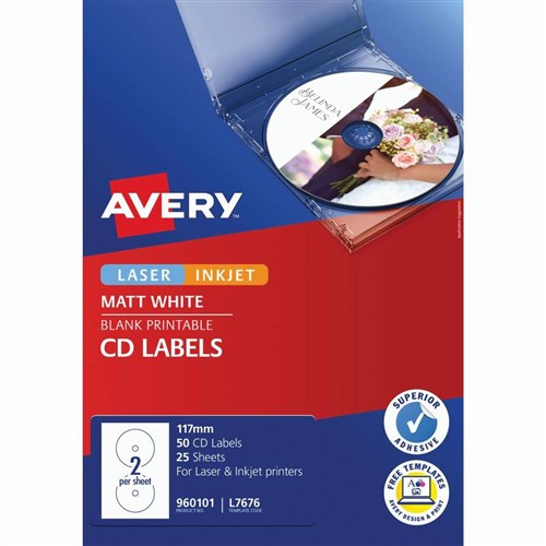 Avery CD Multi Purpose Labels L7676 117mm White 50 Labels 25 Sheets