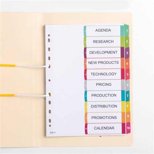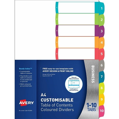 Avery Customisable Dividers A4 10 Tab Bright Assorted L7411-10