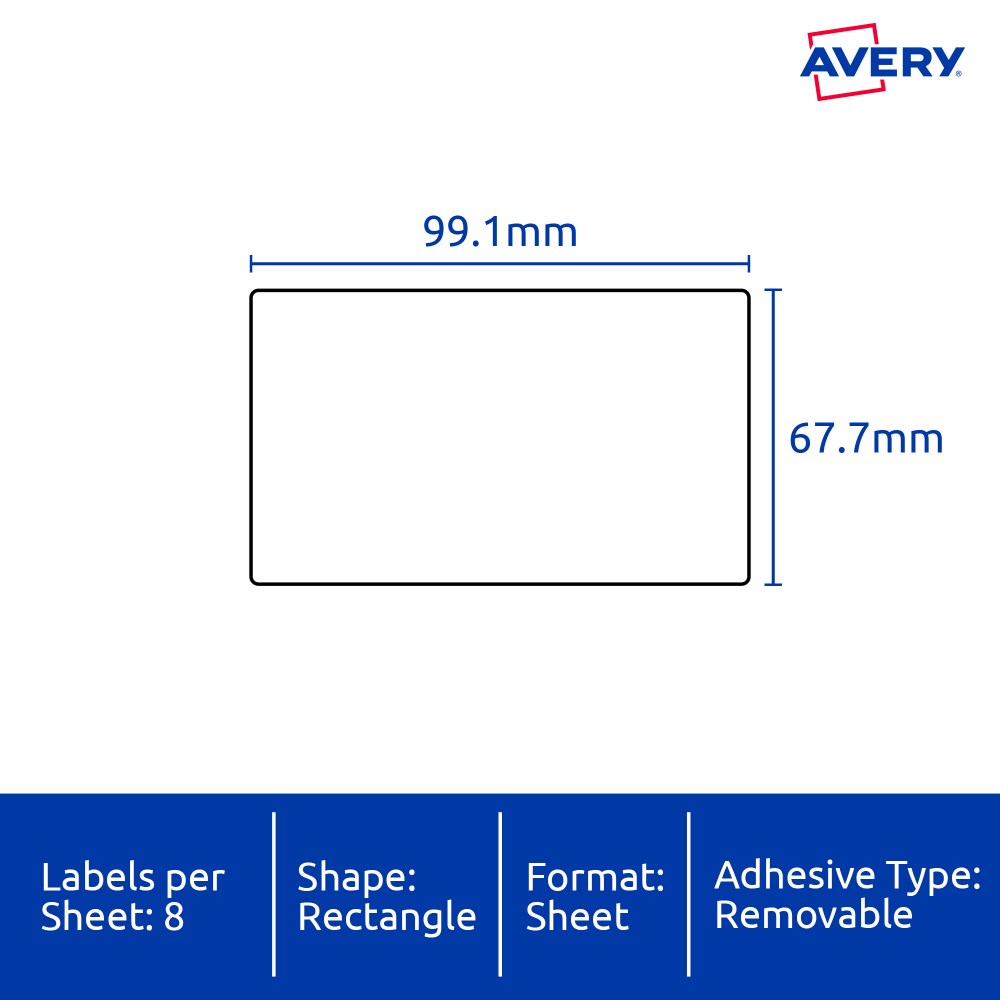 Avery Heavy Duty Removable Laser Labels L4715 99.1x67.7mm White 8UP, 20 Sheets