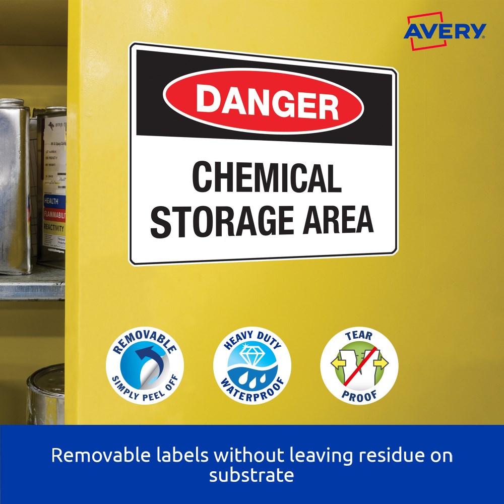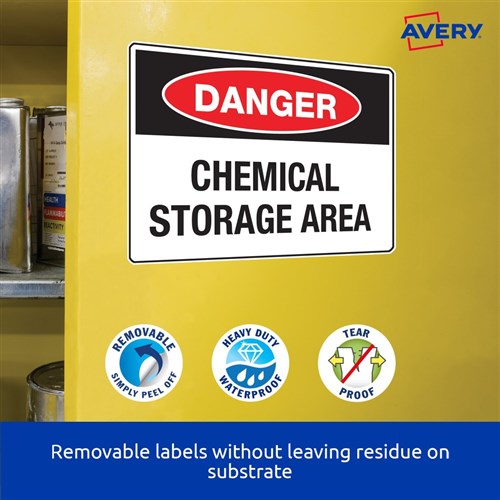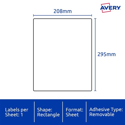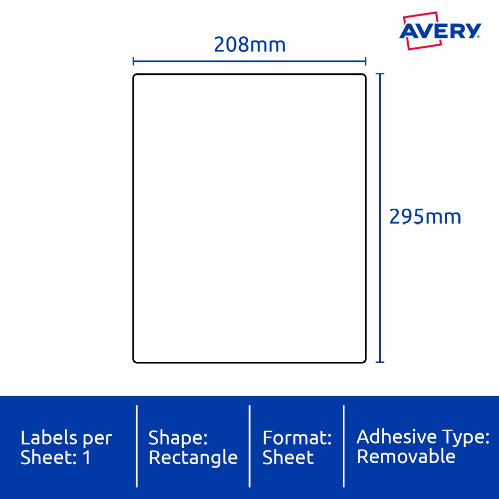 Avery Heavy Duty Removable Laser Labels L4775 208x295mm White 1UP, 20 Sheets