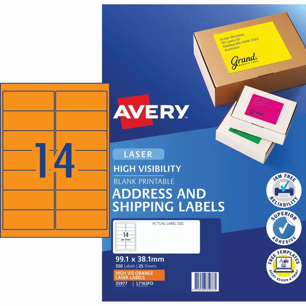 Avery High Visibility Shipping Laser Labels L7163FO 99.1x38.1 Fluoro Orange 14 UP, 25 Sheets