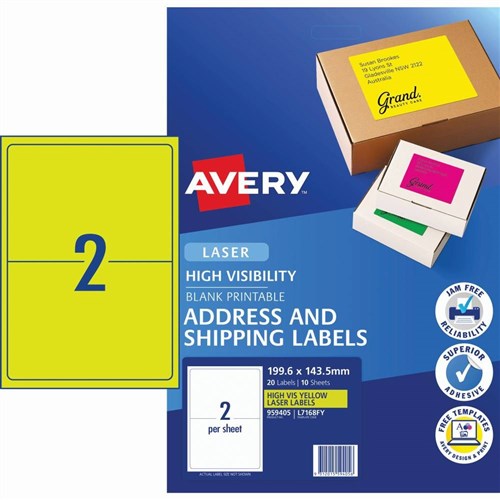 Avery High Visibility Shipping Laser Labels L7168FY 199.6x 143.5 Yellow 2UP, 10 Sheet