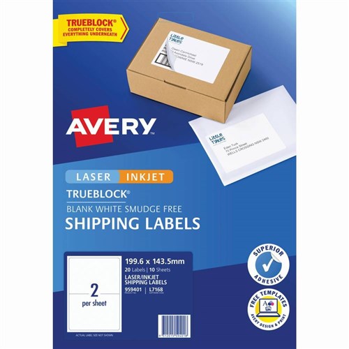 Avery Internet Shipping Laser & Inkjet L7168 199.6x143.5mm White 2UP, 10 Sheets