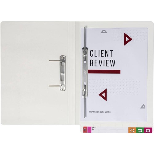 Each file is fitted with a spring transfer file fastener; which allows papers to be secured and easily accessed whenever required.