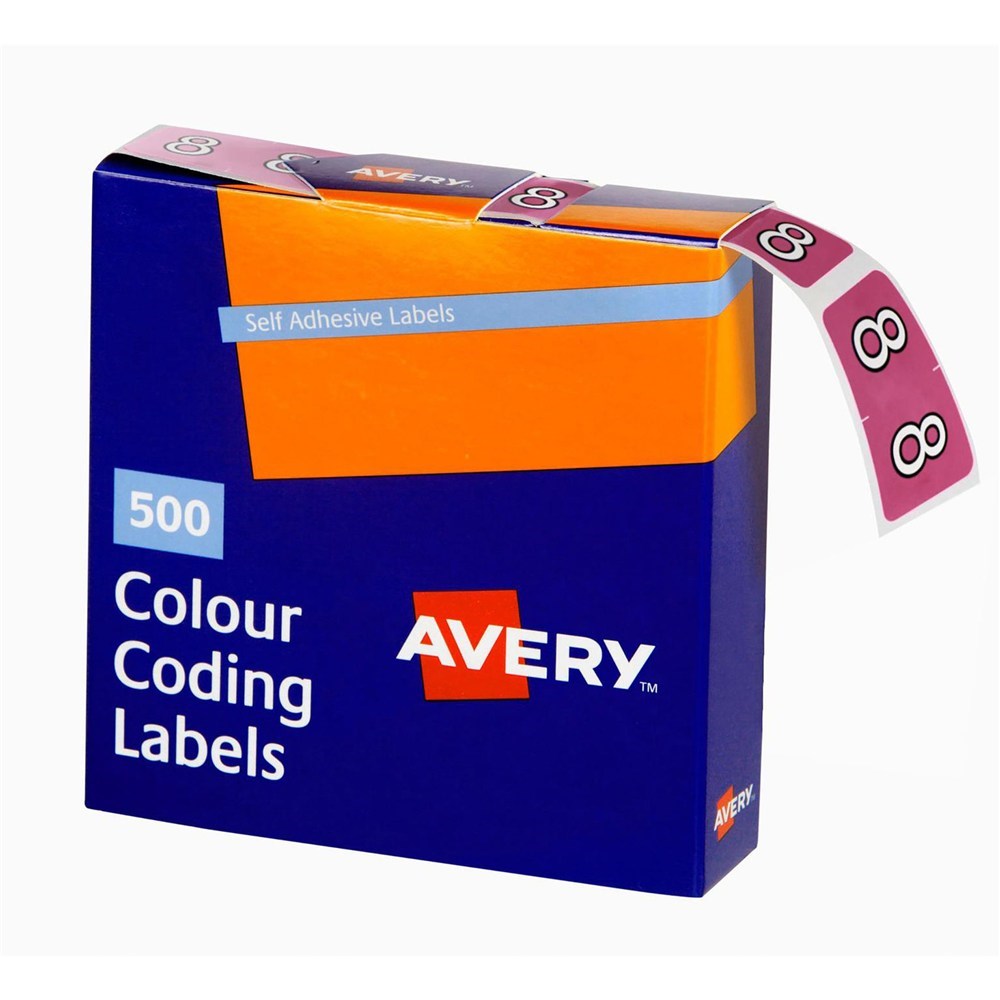 Avery Numeric Coding Label 8 Side Tab 25x38mm Mauve Pack of 500