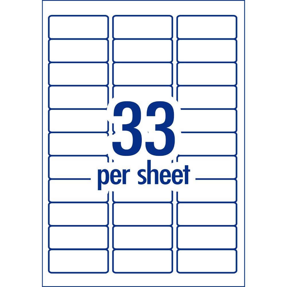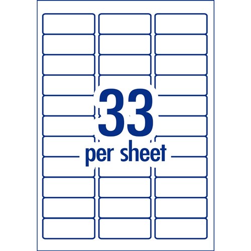 Size: 64 x 24.3mm, 1650 labels, 50 sheets, 33 labels per sheet (33UP).