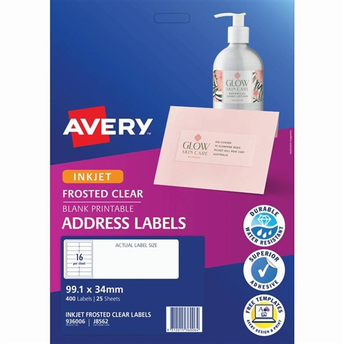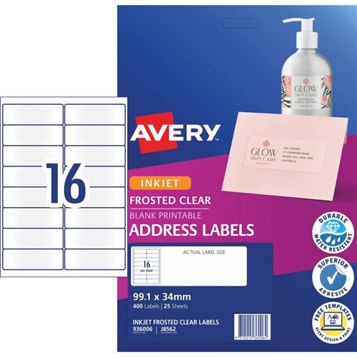 Avery Inkjet Frosted Clear Label 16UP 99.1x34mm 160 Labels 10 Sheets