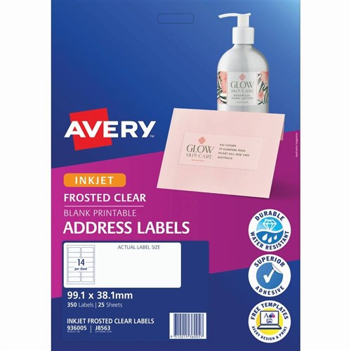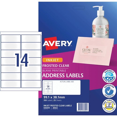 Avery Inkjet Frosted Clear Label 14UP 99.1x38.1mm 140 Labels, 10 Sheets
