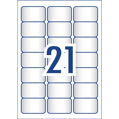 Size: 63.5x38.1mm 525 labels, 25 sheets. 21 labels per sheet (21UP).