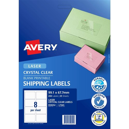 Avery Shipping Laser Labels L7566 199.1x143.5mm Crystal Clear 2UP 25 Sheets