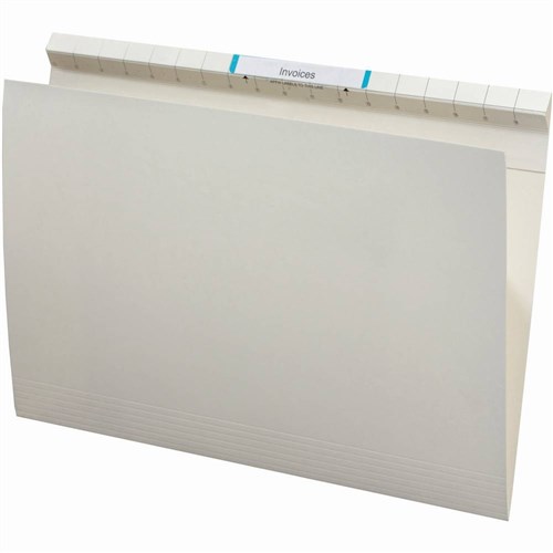 Suitable for upright filing in file cabinets, file cabinet drawers and shelving.