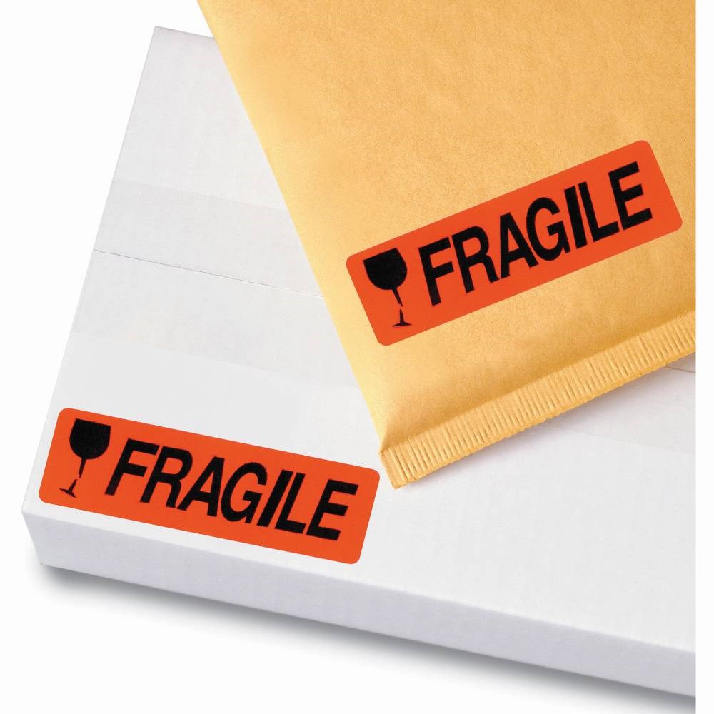Avery Removable Dispenser Labels 19x64mm Fragile Black On Fluoro Red Pack of 125