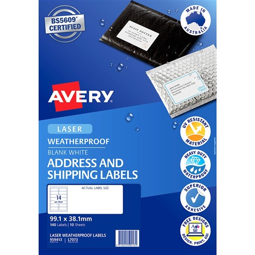 Avery Shipping Labels L7073 14UP Laser Weatherproof White 140 Labels 10 Sheets