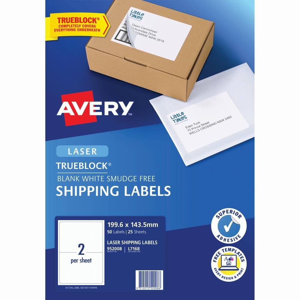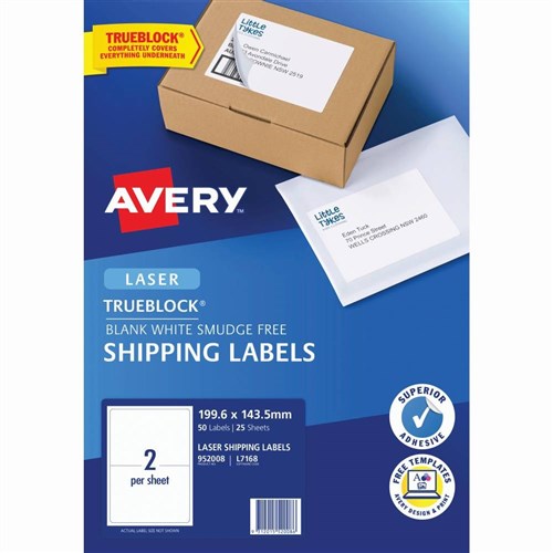 Avery Shipping Laser Labels L7168 199.1x143.5mm White 2UP 25 Sheets
