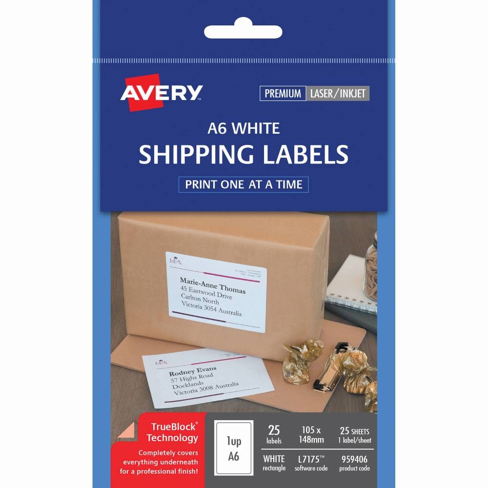Avery Shipping Laser Labels L7175 105x148mm White 1UP, 25 Sheets