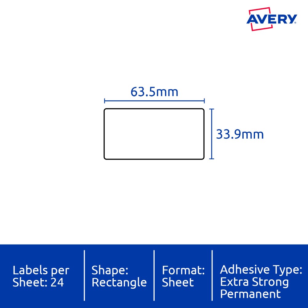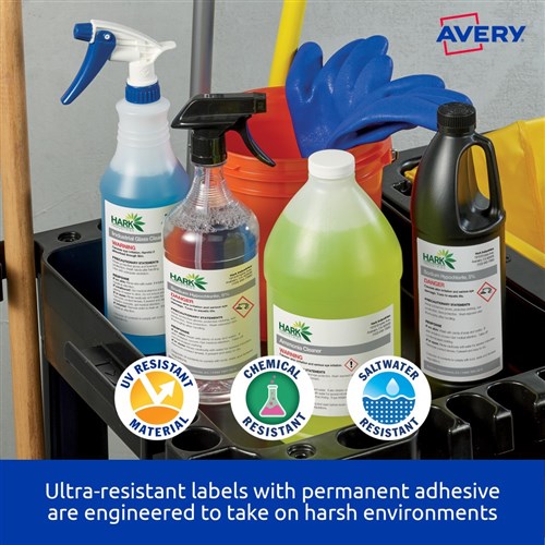 Avery Ultra-Resistant Chemical Grade Laser Labels L7912 63.5x 33.9 White 24UP, 10 Sheet