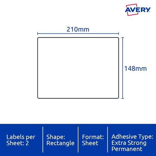 Avery Ultra-Resistant Chemical Grade Laser Labels L7916 210x 148 White 2 UP, 10 Sheets