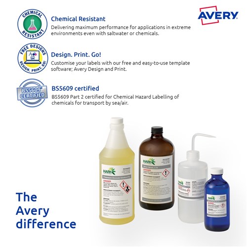 Avery Ultra-Resistant Chemical Grade Laser Labels L7912 63.5x 33.9 White 24UP, 10 Sheet