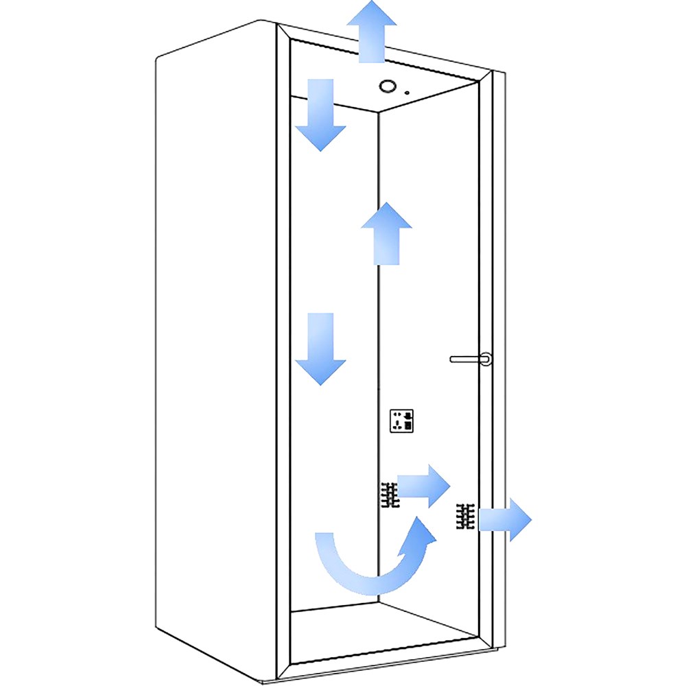 Comes with 2 x ventilation fans, controlled by a door triggered sensor.