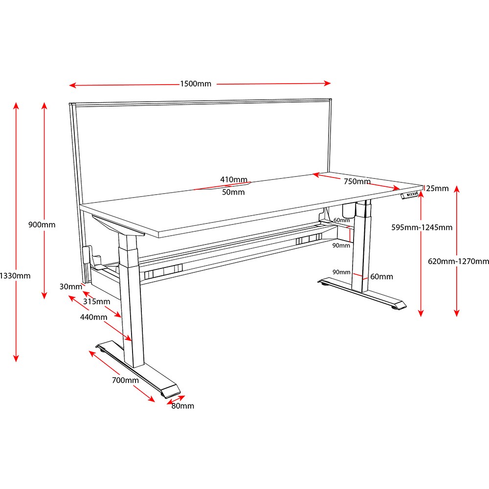 Unit Dimension: 1500mm W x 750mm D x 620-1270mm H.