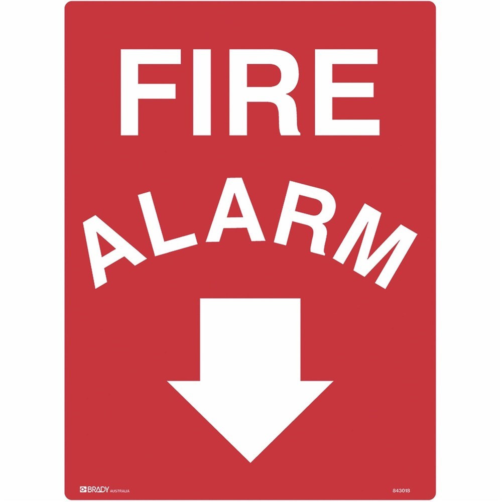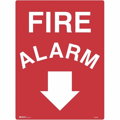 Brady Fire Sign Fire Alarm with Arrow Down 300x225mm Metal