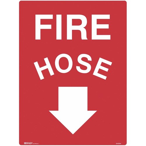 Brady Fire Sign Fire Hose with Arrow Down 450x600mm Metal