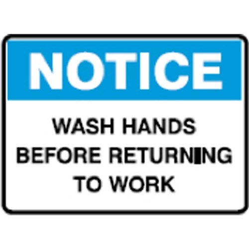 Wording: Notice Sign Wash Hands Before Returning To Work.