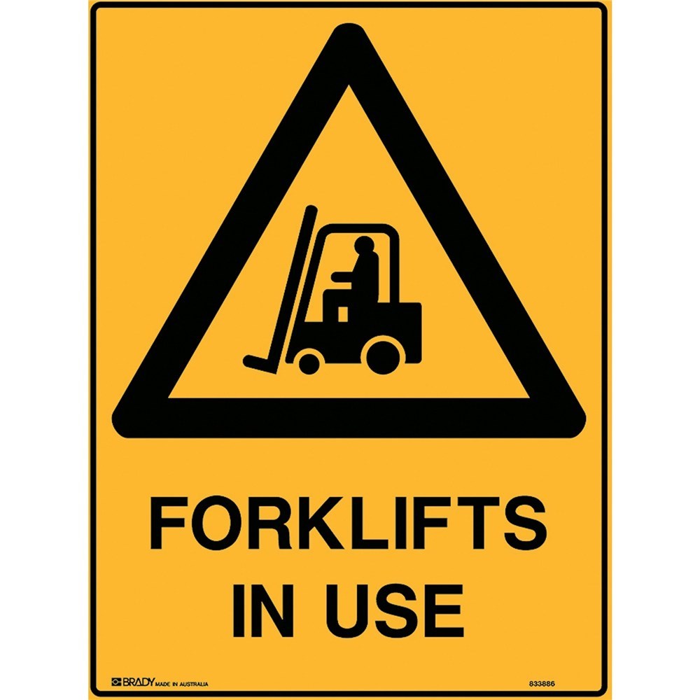 Brady Warning Sign Forklifts In Use 600x450mm Polypropylene