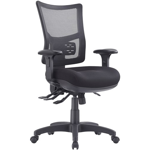 Brent High Back Chair 3 Lever With Arms Seat Slide Mesh Back Black