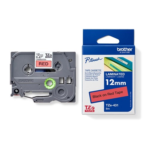 Brother TZe-431 P-Touch Tape 12mm x 8m Black on Red