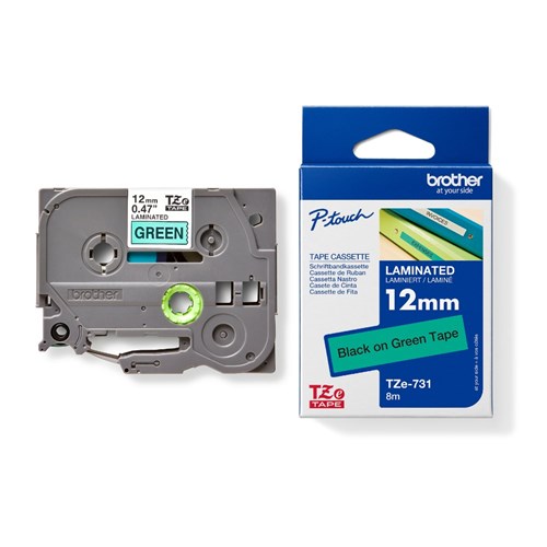 Brother TZe-731 P-Touch Tape 12mm x 8m Black on Green