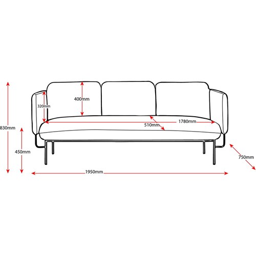 Chair Dimensions: 1950W x 750D x 830mmH.