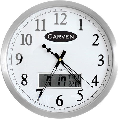 Carven Wall Clock 350mm LCD Calendar Aluminium Frame