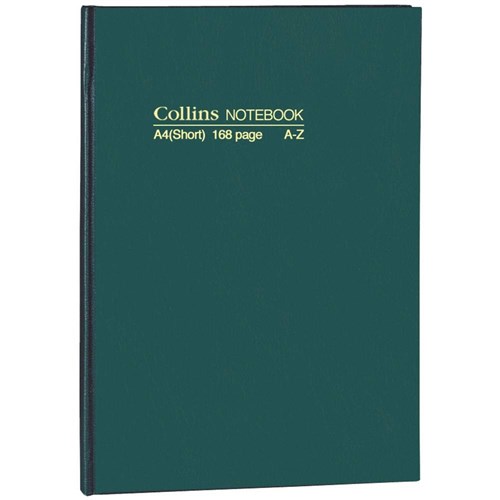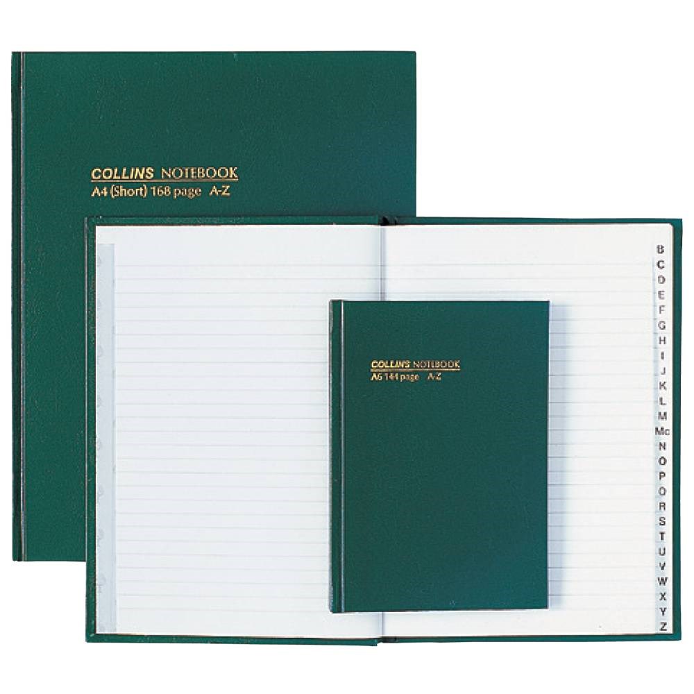 Collins No.5804 Notebooks Hard Cover A4 Short Ruled A-Z 168 Page Green
