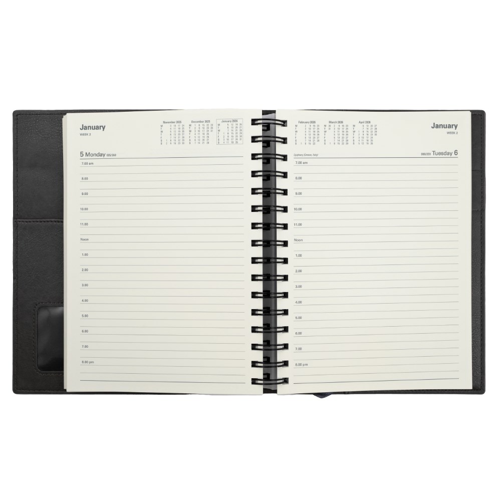 Ideal for those 'on the move' with its double wiro binding and heavily grained metallic and matt PU cover.