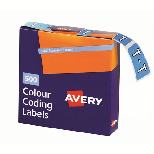 Avery Alphabet Coding Label T Side Tab 25x38mm Blue Pack of 500