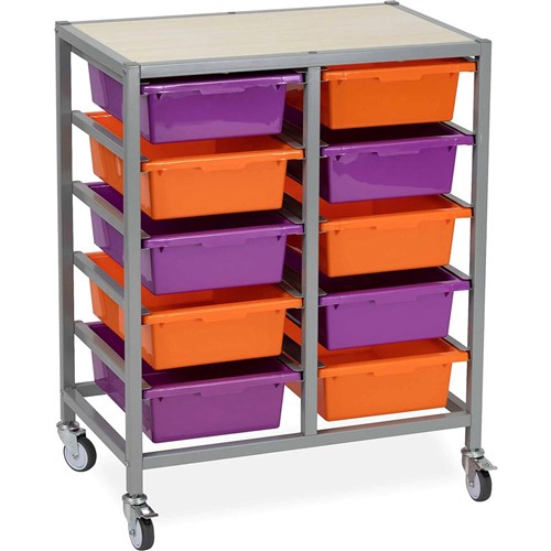 Creative Kids Mobile Tote Tray Trolley Metal Frame Timber Top Double Rack 10 Bay