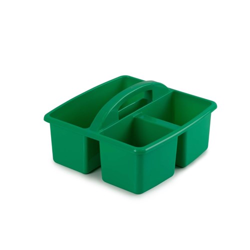 The 3 compartment caddy's features an easy-carry handle, to be moved from desk to desk in all learning spaces.