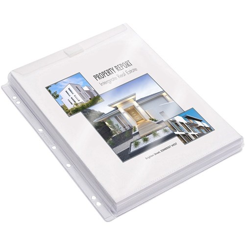 Cumberland Sheet Protectors A4 Heavy Duty 25mm Gusseted Flap & Pocket Clear Pack Of 10