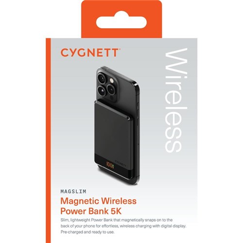 Cygnett MagSlim 10W 5K mAH Magnetic Wireless Power Bank Black