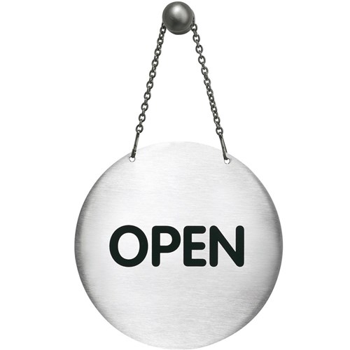 Durable Pictogram Sign Reversible Open/Closed with Chain 130mm Silver